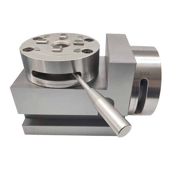 Description: POFI Manual Table Chuck D100 MacroStd with Square Block, it is equivalent to 2 pieces of Manual Chuck 3R-600.23-S mounting on Angle Shelf 3R-A21944. Chucks are compatible with System 3R. One is in horizontal position and the other is in vertical position. It technically leads machine center is able to process product on A Axis direction. Product applies to turning, milling, grinding on CNC machine center in vertical or horizontal position, save time and improve productivity.